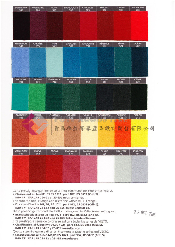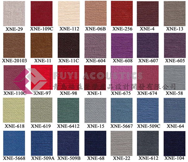 專用于吸聲板、體的表面,作為護(hù)面吸聲裝飾的織物,具有最佳的吸聲、阻燃、防潮、不褪色的功能,并可按照吸聲頻率的要求提供輕質(zhì)、重質(zhì)、超重質(zhì)……等,重量在300g/㎡ -900g/㎡ 范圍內(nèi),也可直接作為吸聲簾幕。